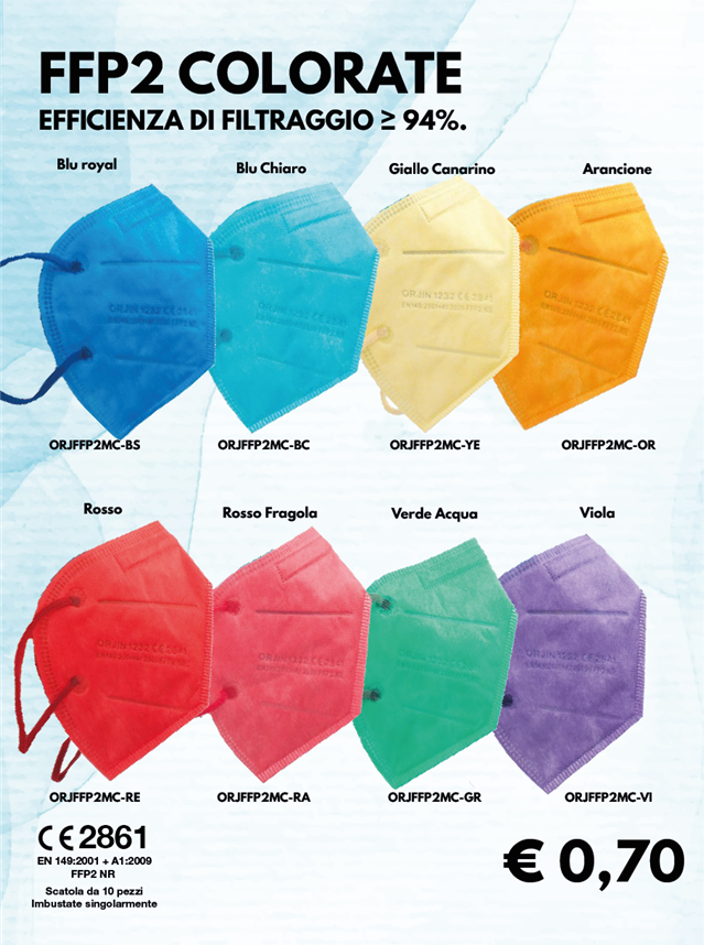 PACCHETTO : Il pacchetto comprende 25 mascherine FFP2 imballate e sigillate singolarmente.