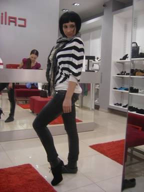 La foto mostra una ragazza mora, presumibilmente in un negozio di scarpe. Niente di osceno, una ragazza normalissima, carina.