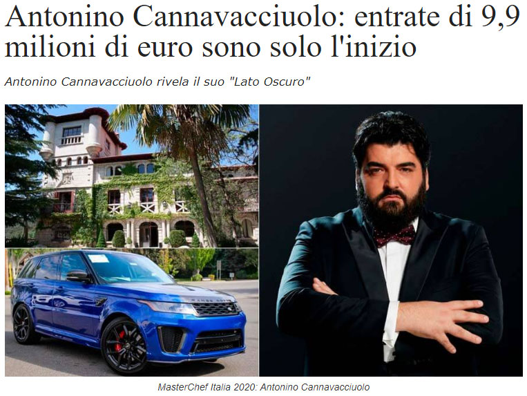 Cannavacciulo ha entrate di 9.9 milioni di euro, questa “l’incredibile” premessa dello spam di oggi. Ora, non è per fare il ragioniere ma questo non vuol dire niente. Ammesso e non concesso che sia vero, anche trascurando la possibilità che lo chef abbia partecipazioni in una o più società, in ogni caso avere entrate di x non significa niente se non si specificano anche le uscite. In linea di massima quello che conta sono gli utili (ricavi-costi), i ricavi da soli non sono importanti.