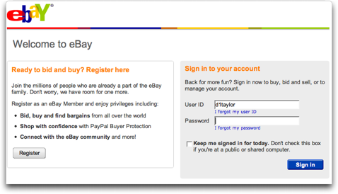 Questo tentativo di phishing è un pelo più sofisticato del solito: si rivolge a venditori su e-bay. Il trucco è il solito: il link nella mail (attivo) sembra un link legittimo ad e-bay ma cliccandoci sopra si viene portati su un sito differente che sembra e-bay e chiede user name e password.
