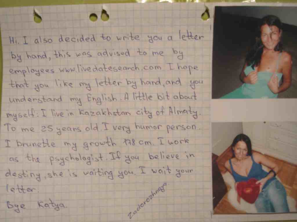 Questa volta l’esca degli spammer è piuttosto golosa: Katya non ci manda una semplice mail ma allega una letterina scritta a mano, come quelle di una volta. Per far scatenare l’ormone maschile nella foto mette in mostra anche una tetta… foto piccolissima, sfocatissima ma più che sufficiente a far perdere a molti maschietti in crisi di astinenza il lume della ragione.